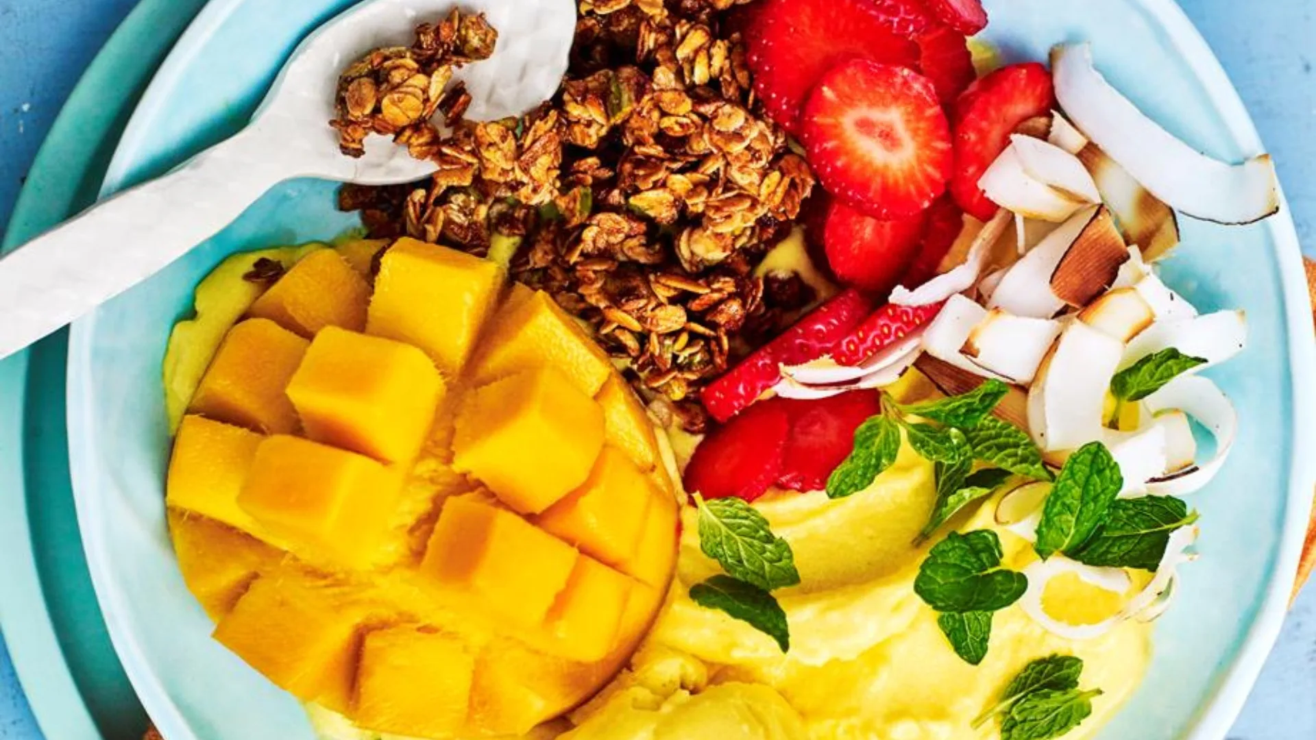 Swap your go-to breakfast for this colourful bowl inspired by the traditional Indian drink, mango lassi. In our recipe, we combine yoghurt with fresh and frozen fruits, then top the mixture with a crunchy and fragrant cardamom crumble. It’s a refreshing start to a hot summer’s day.