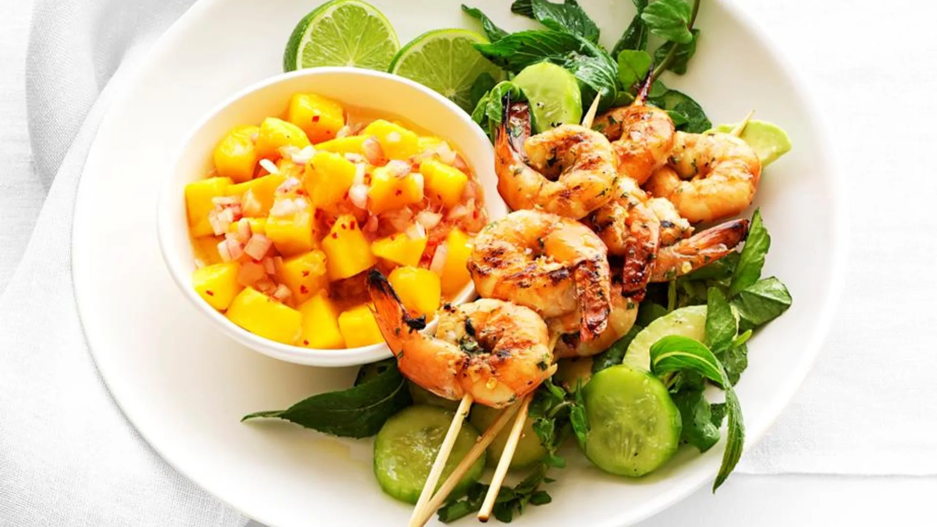 Take advantage of the warmer weather and add this summery dish to your recipe repertoire. Pair barbecued prawns with a delicious mango and chilli salsa and fresh greens, like watercress and cucumber. It’s quick, fun, and vibrant. What’s not to love?